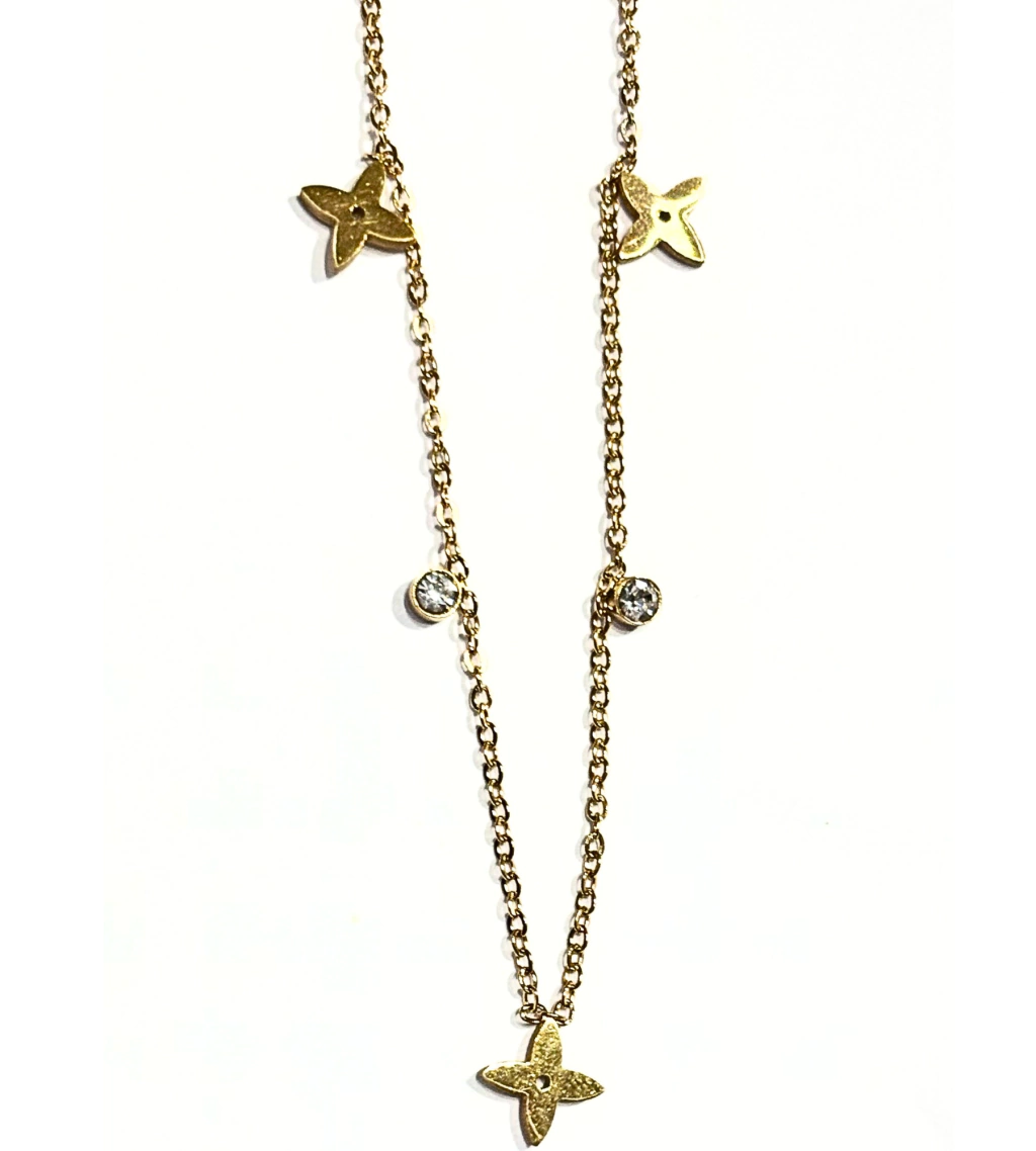 COC1003 Collar Trebol con strass blanco en Acero Quirúrgico 316L